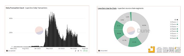 回到文章開頭的漫畫,鏈抽象項目們?nèi)耸忠粋技術(shù)堆棧、Tokens標(biāo)準(zhǔn),在缺少外部增量的市場環(huán)境中,難免被詬病為空氣基建。Layerzero空投前后的數(shù)據(jù)落差也讓市場對于“跨鏈通信”的真實需求產(chǎn)生了懷疑。