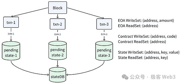 ·沖突檢測(cè):在交易執(zhí)行過程中,EVM會(huì)監(jiān)測(cè)不同交易的ReadSet和WriteSet。如果發(fā)現(xiàn)多個(gè)交易嘗試讀寫相同的狀態(tài)項(xiàng),則視為發(fā)生沖突。