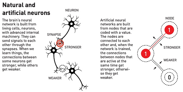 生物神經(jīng)元之間信號的強弱,和神經(jīng)網(wǎng)絡(luò)節(jié)點之間強弱的類比。