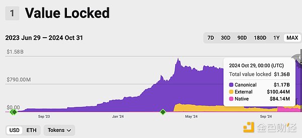 正是在這個背景下,當(dāng)前L2賽道蓬勃發(fā)展。根據(jù)L2Beat的數(shù)據(jù),市場上已有110條L2或L3擴(kuò)展解決方案在運(yùn)行,然而,只有少數(shù)L2能獲得主流認(rèn)可,并產(chǎn)生大量TVL和用戶。截至2024年10月24日,L2擴(kuò)展解決方案的TVL已經(jīng)達(dá)到了376.2億美元,與一年前相比翻了3倍,顯示出了強(qiáng)勁的發(fā)展勢頭和用戶需求。
