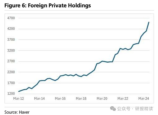 外國央行曾經是美債最重要的買家之一。在2000年代初期,日本和中國等國為了維持匯率穩定,積累了大量美元資產并投資于美債。但現在情況發生了根本性變化-在美元走強的環境下,許多央行不得不出售美債來獲取美元維持本幣匯率。一些央行甚至已經提前在美聯儲的外匯逆回購工具(RRP)中儲備了大量美元,以應對可能的匯率壓力。除非美元出現明顯走弱,否則外國官方部門對美債的需求預計將維持疲軟。