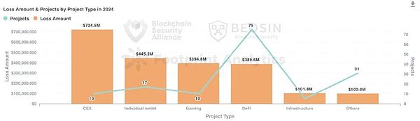 2024年,鏈上黑客攻擊活動、項目方RugPull事件次數(shù)均較2023年有了明顯下降,但損失金額仍在增加,并且釣魚攻擊更加猖獗。損失最高的攻擊手法依然為私鑰泄露。造成這一轉(zhuǎn)變的主要原因包括:
