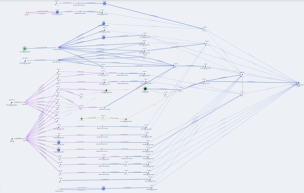 攻擊者利用閃電貸虛假推高$BOOTokens價值,借出其它加密資產(chǎn)。隨后,被盜資金被攻擊者轉(zhuǎn)換成FTMTokens,然后跨鏈到ETH鏈,將所有資金都存放在ETH鏈上。以下是ARB鏈和ETH鏈上的資金流動過程示意圖: