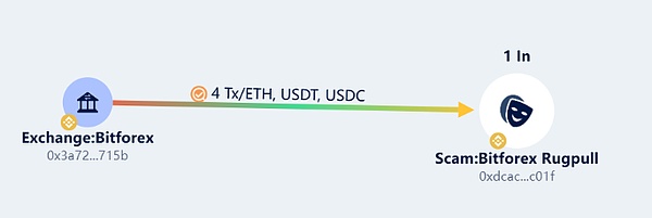 隨后在北京時間8月9日跑路地址將除了TRB以外的Tokens(包括147.9ETH、40,771USDT和258,700USDC)全部轉(zhuǎn)回Bitforex交易所賬戶(0xcce7300829f49b8f2e4aee6123b12da64662a8b8)。
