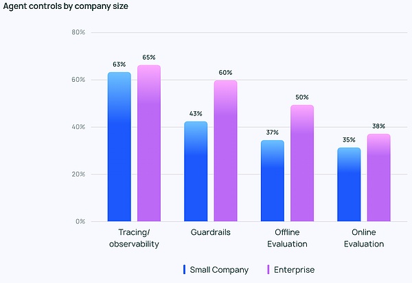 關(guān)于Agent的討論并不全是Twitter上的炒作。大約51%的受訪者目前正在生產(chǎn)中使用Agent。根據(jù)Langchain按公司規(guī)模的數(shù)據(jù),100-2000員工的中型公司在Agent投入生產(chǎn)方面最為積極,比例達(dá)到63%。