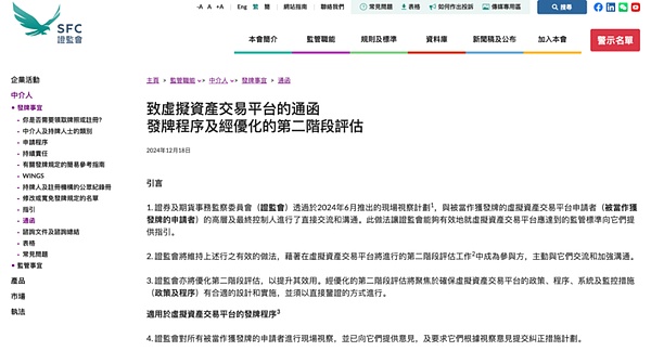 同在 2024年12月18日,香港證監(jiān)會(huì)發(fā)布《致虛擬資產(chǎn)交易平臺(tái)的通函-發(fā)牌程序及經(jīng)優(yōu)化的第二階段評(píng)估》,為仍在排隊(duì)等待牌照申請(qǐng)的11家機(jī)構(gòu)提供了清晰的路線圖指引;2025年初,證監(jiān)會(huì)將為所有持牌平臺(tái)成立一個(gè)正式的咨詢小組,各持牌機(jī)構(gòu)都將委派其高層人員擔(dān)任代表,便于香港證監(jiān)會(huì)充分聽取和考慮機(jī)構(gòu)觀點(diǎn),以及有系統(tǒng)地優(yōu)先處理建基于投資者保障的發(fā)展事項(xiàng)。新的一年,必將有更多優(yōu)秀團(tuán)隊(duì)加入虛擬資產(chǎn)交易平臺(tái)的隊(duì)伍,推動(dòng)市場(chǎng)繼續(xù)壯大。