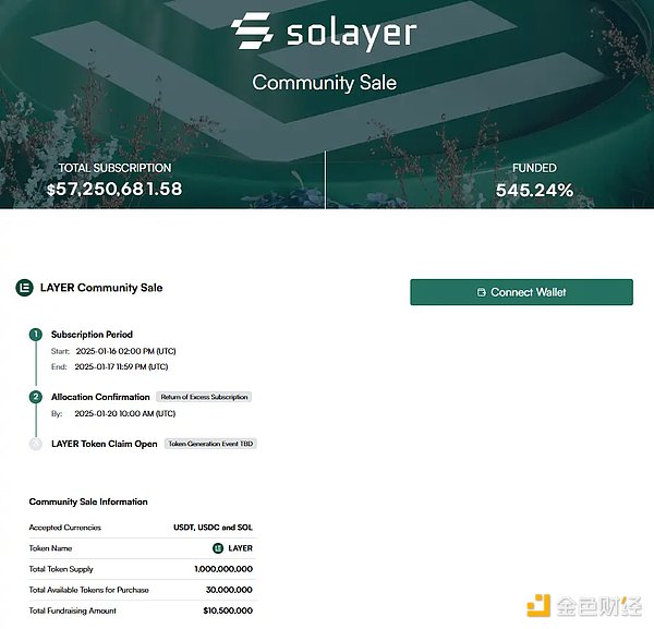 1月18日,幣安前高管創(chuàng)建的IC0平臺(tái)Buidlpad上首個(gè)公售項(xiàng)目Solayer(LAYER)結(jié)束發(fā)售,最終募集的資金高達(dá)5730萬美元,比原計(jì)劃的1050萬美元多出545.24%。