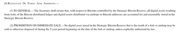 協(xié)議還應(yīng)明確指出,盡管Bitcoin資產(chǎn)被存儲在戰(zhàn)略Bitcoin儲備的獨立賬戶中,國家依然保留對這些隔離賬戶中所持有的Bitcoin的所有權(quán)及相關(guān)法律權(quán)益。這包括了因Bitcoin網(wǎng)絡(luò)發(fā)生分叉或空投事件而產(chǎn)生的任何新的數(shù)字資產(chǎn)的所有權(quán)。