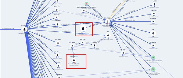 雖然Bybit采用了多簽機制,但多個簽名方依賴于相同的基礎設施和驗證流程,一旦其中一個環節被攻破,整個安全體系即被突破。攻擊者只需攻破一個簽名者的設備,即可偽造交易并獲取足夠的簽名權限。被盜資金*洗*錢路徑與關鍵節點突破