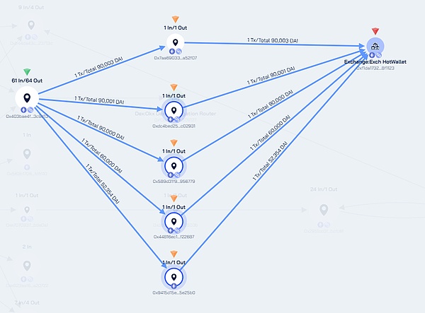 Bybit黑客銷贓模式趨于穩定,主要使用Thorchain將資產轉移至BTC公鏈,以及利用OKXDEX兌換為DAI再進行流轉。