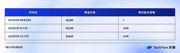 不過,對于風險資產的投資玩家來說,債券更多的起到資金成本的“錨”的作用。如果看到國債收益率暴跌,而公司債收益率不降反升,說明市場在尋找安全資產。這時候,Bitcoin等風險資產會被拋售的可能性更大。黃金:降息周期中的穩定贏家