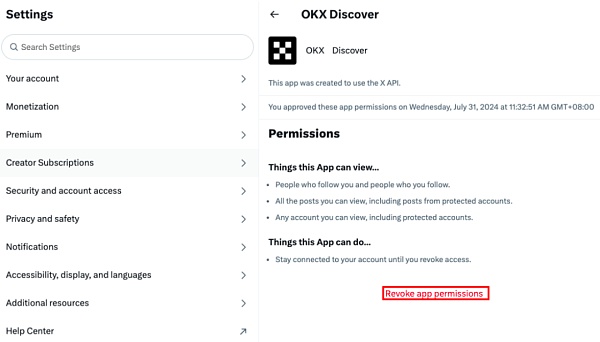很多釣魚方式是利用用戶誤點(diǎn)擊授權(quán)應(yīng)用鏈接,導(dǎo)致把 X 賬號的發(fā)推權(quán)限授權(quán)出去,隨后賬號被用于發(fā)送釣魚信息。